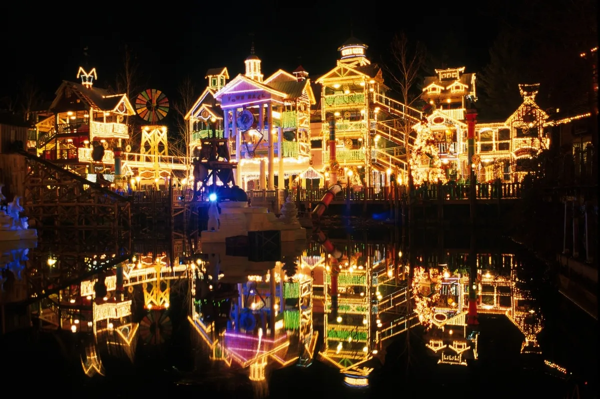 Let your inner child soar. Silver Dollar City is an 1880’s mining town themed amusement park and at Christmas is it decked out in over 6.5 million lights!