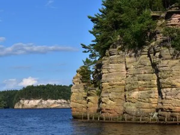 Glacially formed along the Wisconsin river, this gorge features striking sandstone formations that are best experienced by boat.