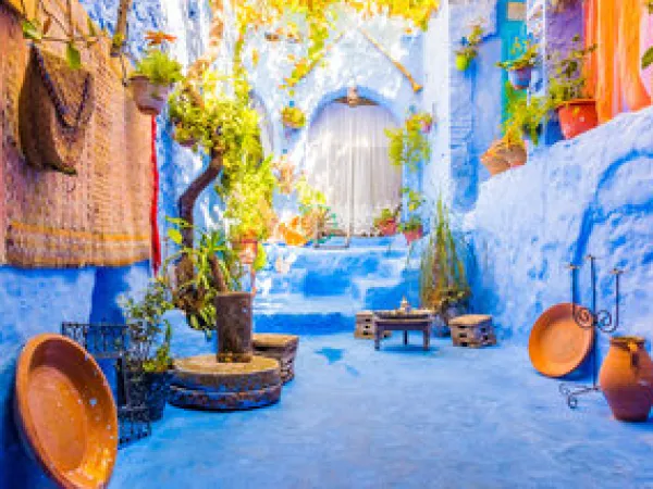 On your first full day in Morocco, we'll visit Rabat, the first of Morocco's Imperial Cities and the administrative capital of the Kingdom of Morocco. Rabat, on Morocco's northern coast and facing the Atlantic Ocean, is an intriguing mix of the region's past glories and modern marvels. During our tour of this imposing city, we'll visit the Palais Royal, the Hassan Tower, and the Mohammed V Mausoleum. After enjoying lunch in a local restaurant, we depart for the blue city of Morocco, Chefchaouen. After hotel check-in, a group dinner is planned this evening at your riad.