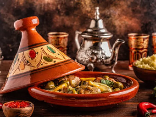 Moroccan cuisine is one of the most fascinating in the world, and Fez is the capital of Moroccan cooking. Today, is an exciting and savoury day, preparing Moroccan dishes during a private cooking class. Start with a morning visit to the souk to gather the necessary ingredients, then enjoy an authentic cooking experience. Prepare traditional appetizers, main dishes and desserts, then enjoy lunch at a Moroccan home, a beautifully restored riad featuring all the modern amenities. Returning to the hotel in mid-afternoon to enjoy the rest of the day at leisure.