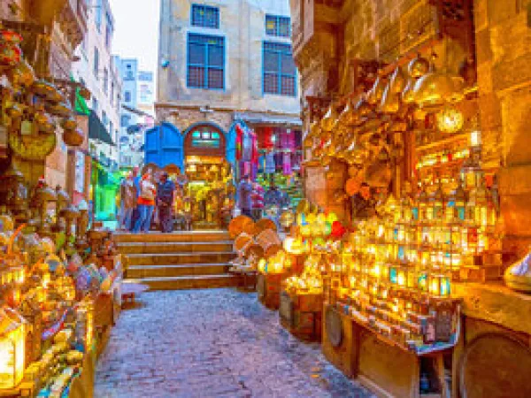 This morning, transfer to Moez Street, surrounded by a mix of medieval mosques and buildings alongside modern vendors and shops in Old Cairo. From here, visit the world-famous Khan El Khalili bazaar, the oldest market of the middle east housing many mini bazaars and traditional coffee shops, enjoy a walking tour with plenty of free time for shopping.